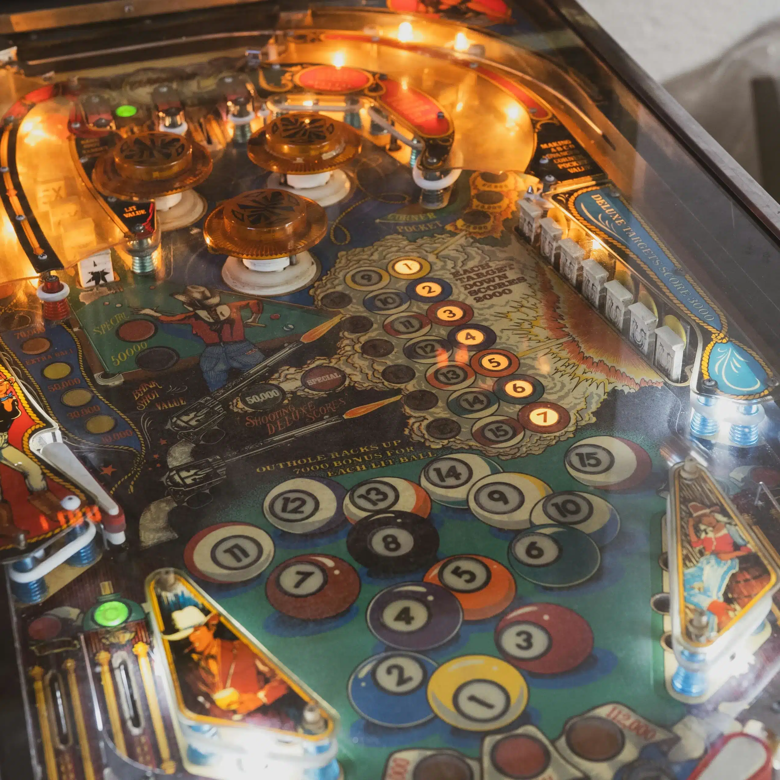 Le flipper classique, emblème des jeux de divertissement, offre une expérience mécanique authentique avec ses flippers, bumpers, lumières clignotantes et sons caractéristiques.