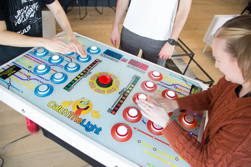 Redécouvrez le plaisir du challenge collectif avec notre Catch the Light ! Ce jeu de réflexe ultra-dynamique transforme instantanément vos séminaires en moments inoubliables de complicité. Regardez vos collaborateurs se défier dans la bonne humeur, créant naturellement cet esprit d’équipe que vous recherchez.