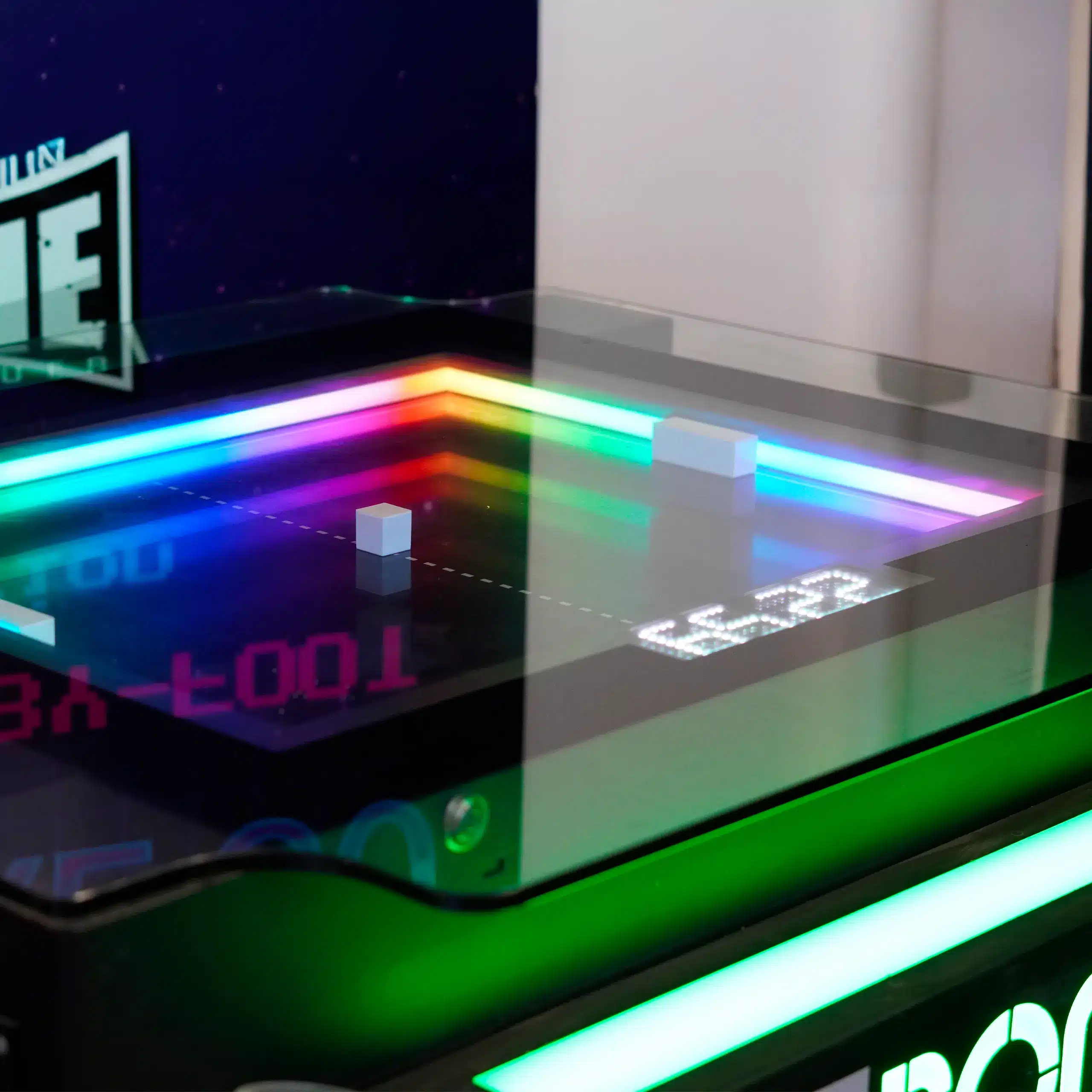 Son système électromécanique avec aimants puissants guide parfaitement la balle et les raquettes. L’éclairage LED multicolore crée une ambiance exceptionnelle. Notre équipe réactive assure un SAV professionnel et des tarifs transparents. Cette pièce collector transforme vos événements en voyages nostalgiques inoubliables !